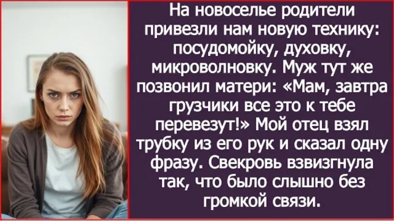 ИСТОРИЯ ИЗ ЖИЗНИ/Родители подарили нам новую технику на новоселье, а муж решил отдать всё свекрови