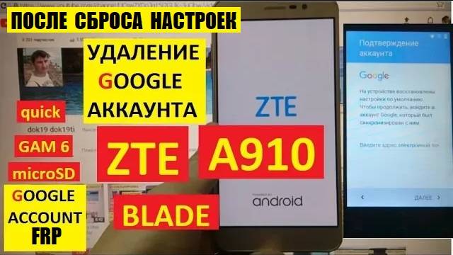 Удалить аккаунт Гугл ZTE Blade A910 / FRP ZTE A910