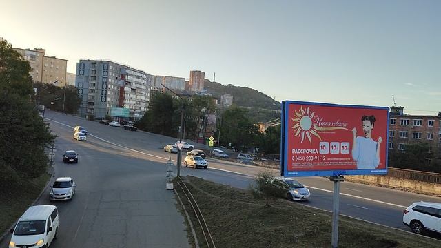 09.10.2025г. Четверг, утро, иду на работу. Солнышко красиво освещает улицы города. Решила запечатлеть микрорайон Владивостока, площадь Баляева.