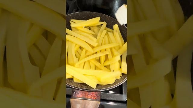Домашний бургер и картофель фри, приготовленные вмест