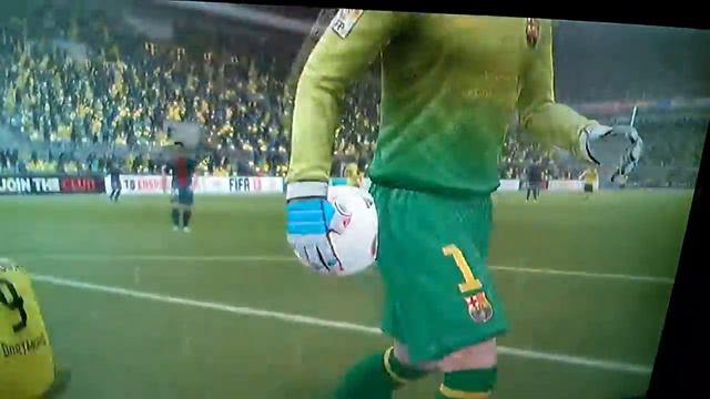 Barcelona goal keeper accidentally knocking out Robert Lewandowski, November 2012