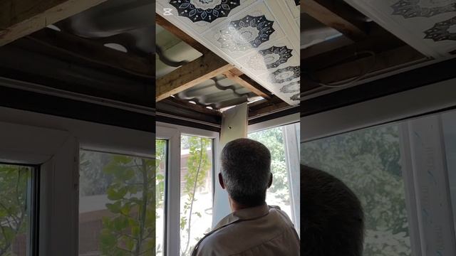 Решила обшить потолок беседки ламбрином