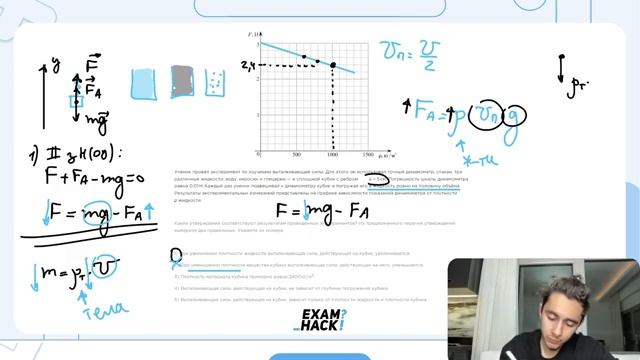Ученик провёл эксперимент по изучению выталкивающей силы Для этого он использовал точный - 26383