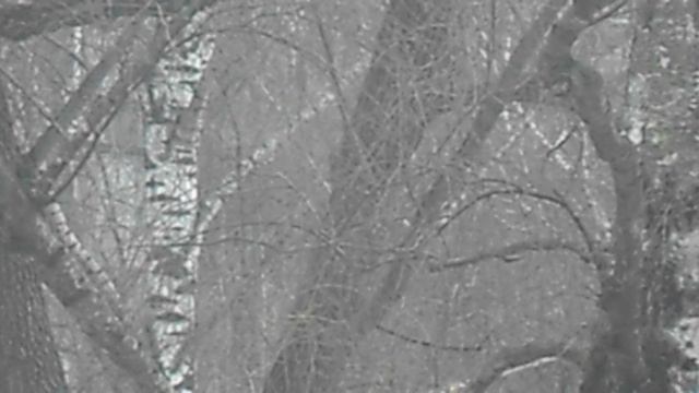 Снег. Белочка по стволу дерева 354354 DSCN5182