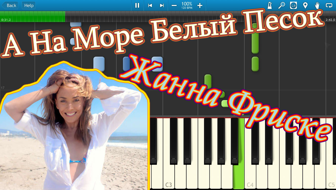 Жанна Фриске - А На Море Белый Песок (на пианино Synthesia)