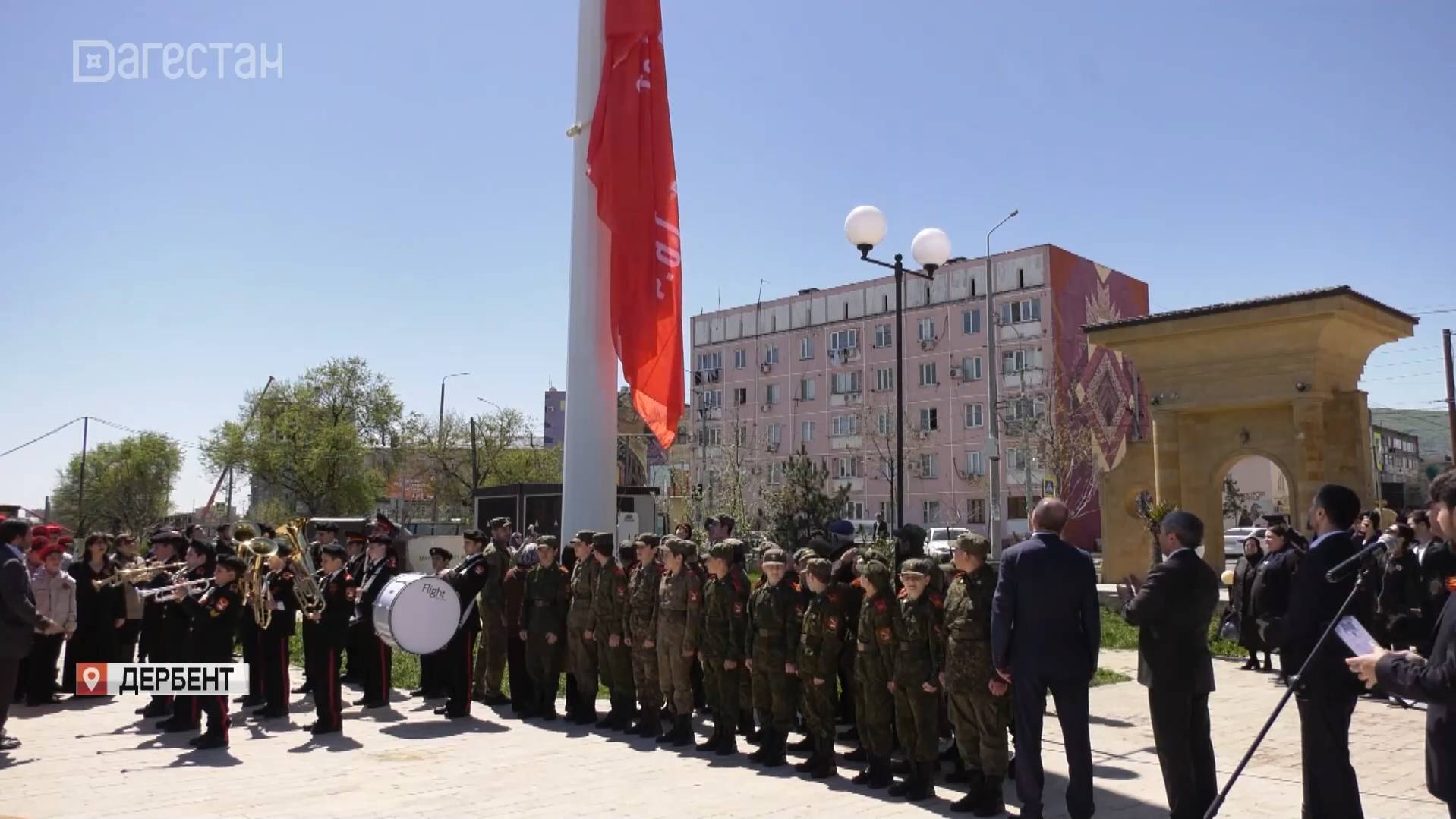 В Дербенте развернули десятиметровое Знамя Победы