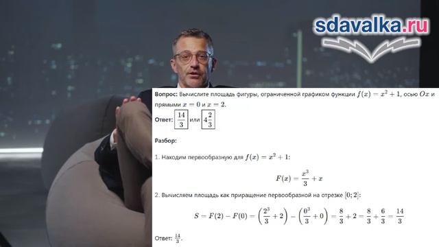 Правила интегрирования (правила нахождения первообразных): Первообразная суммы равна сумме первообразных. Постоянный множитель можно выносить за знак первообразной. Понятие криволинейной трапеции. Задача о вычислении площади криволинейной трапеции. Геометрическая интерпретация первообразной как переменной площади. Подготовка и обучение школьников с помощью ИИ: https://sdavalka.ru/. Как работать? - Зарегистрируйтесь. - Найдите нужный предмет и класс. - Изучите материалы по урокам: текст, понятный ученикам, сжатый видеоурок с ИИ. - Пройдите тренировочный тест (можно проходить бесконечно, для усвоения материала). - Уверены, сдавайте экзаменационный тест! - И так по каждой теме. - В конце итоговый тест. - Сдадите все - сдадите любой экзамен! Системы дистанционного образования, контент: https://ecre.ru/ Подготовка для ВУЗов и СУЗов: https://mexam.ru/