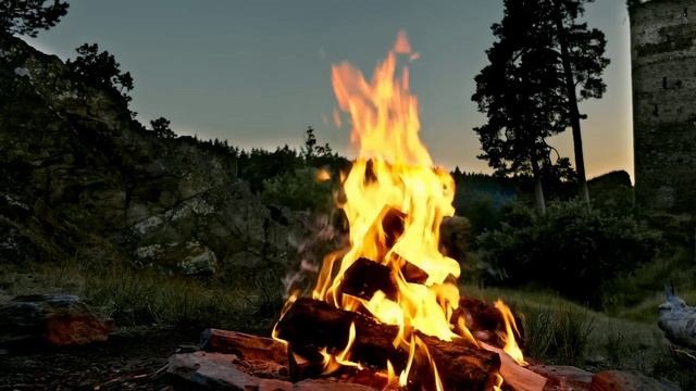 Музыка костра в сумерках горного леса. Релаксация, отдых, сон.