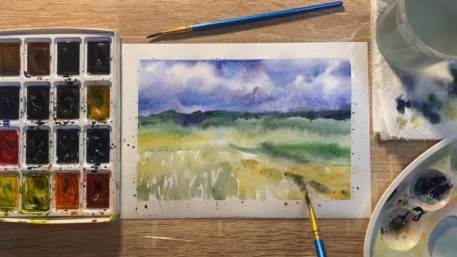 Как нарисовать степь карандашом и акварелью начинающим | Рисунок для детей
