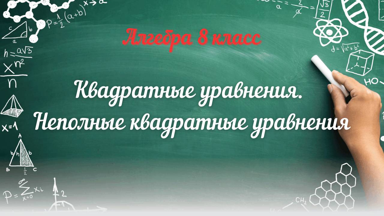 Квадратные уравнения. Неполные квадратные уравнения. Алгебра 8 класс