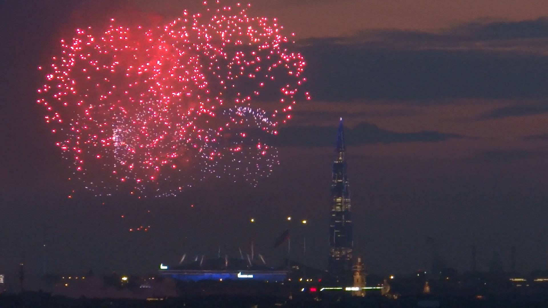 Красочный салют в Санкт-Петербурге в честь Дня ВМФ 2024