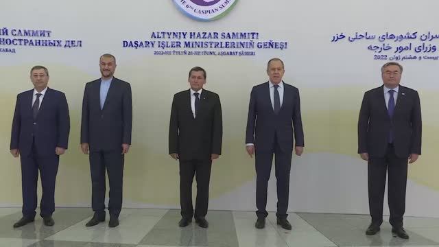 Совместное фотографирование перед СМИД прикаспийских государств, Ашхабад, 28 июня 2022 г.