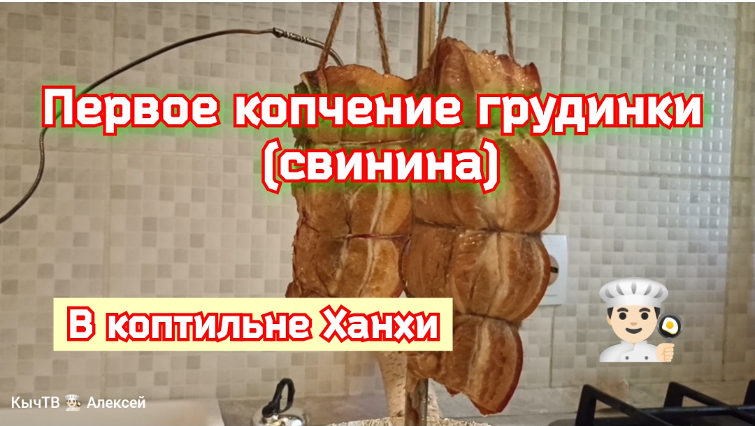 Первое копчение грудинки (свинина) в коптильне Ханхи.
