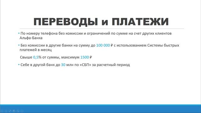 ✅Ссылка на карту - https://alfa.me/IAhHoc Альфа-Карта — это флагманская дебетовая карта Альфа-Банка. Банк предлагает три весомых аргумента для её оформления: Бесплатное обслуживание. Бесплатные денежные переводы в любые банки. Повышенный кэшбэк в популярных категориях. Однако, прежде чем принять решение, целесообразно рассмотреть все условия и особенности продукта более детально. Описание карты Альфа-Карта относится к категории дебетовых карт платёжной системы «Мир». Обслуживание карты предоставляется на безвозмездной основе. Максимальный размер кэшбэка составляет до 100%. Процентный доход на остаток денежных средств не начисляется. Бесплатное обслуживание Альфа-Банк предлагает выпуск и последующее обслуживание Альфа-Карты без взимания платы за использование. Это является редкостью на рынке банковских услуг. Обычно бесплатные карты предоставляются только определённым категориям клиентов, таким как зарплатные или пенсионные. Для остальных категорий клиентов банки предлагают условно бесплатные карты, при этом комиссия за обслуживание не взимается при соблюдении определённых условий, таких как поддержание неснижаемого остатка или выполнение определённого объёма транзакций ежемесячно. В сравнении с такими продуктами, Альфа-Карта действительно выделяется, так как не требует постоянного контроля за расходами и поддержания баланса. Единственным случаем, когда может взиматься плата, является перевыпуск карты по инициативе клиента, который обойдётся в 290 рублей. Дополнительно стоит отметить, что к основной карте можно бесплатно оформить дополнительные карты как на ваше имя, так и на других лиц. Программа лояльности За операции по карте Альфа предусмотрена система вознаграждений. Ежемесячно клиент может выбрать в личном кабинете одну из двух схем начисления кэшбэка: 5% кэшбэка в четырех категориях, выбранных клиентом. 5% кэшбэка в трех категориях и 1% кэшбэка за остальные операции. В случае, если категории повышенного кэшбэка не были выбраны, за все операции начисляется 1% кэшбэка. Дополнительно клиент может получить до 100% кэшбэка на случайную категорию товаров или услуг в барабане суперкэшбэка. Если выбранная категория совпадает с категорией, выпавшей в барабане, вознаграждение суммируется. Ежемесячный лимит кэшбэка составляет 5 тысяч баллов. Выплата вознаграждения осуществляется в виде баллов до 15-го числа месяца, следующего за отчетным. Баллы могут быть конвертированы в денежные средства по курсу 1 балл = 1 рубль. Перечень операций, за которые не начисляется кэшбэк, включает снятие наличных, денежные переводы, оплату коммунальных услуг, услуг сотовой связи, штрафов и налогов, а также операции на сумму от 50 тысяч рублей. Кроме того, по карте предоставляется кэшбэк до 50% на покупки у партнеров банка. Список актуальных предложений доступен для ознакомления в личном кабинете клиента. Партнерский кэшбэк не имеет ограничений по сумме выплат в месяц.