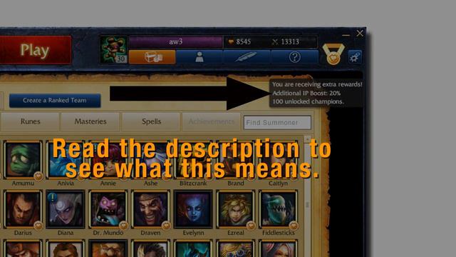 https://www.facebook.com/pages/AweCesar/307843752584027?ref=hl New Extra Reward System: "We're going to begin testing international features on the PBE. The first feature we'll be testing is a Korea-specific feature that gives players extra perks for playing League of Legends in PC Bangs (Korean PC Cafes). Korean players tend to play League of Legends primarily from these locations. In Korean PC Bangs, players pay by the hour to play the game of their choice in a social environment. Within this environment, most game titles (regardless of price) are offered to players via a reduced pricing structure or for free to account for the PC Bang's usage fee. Our approach is to allow players to select any champion when playing League of Legends from PC bangs, as well as earn a small amount of additional IP. This feature does not affect Korean players when they log in outside of PC Bangs. When this feature is active, you will see a small medal icon in the top-right corner of the League of Legends client, be able to select any champion, and earn an additional 20% IP at the end of matches. This feature does not actually "unlock" champions, so you will still need to own a champion in order to buy a skin for them. At this time we have no plans for large-scale implementation of this feature in other regions. For testing purposes, everyone who logs into PBE will be treated like a PC Bang user and will receive these rewards. If you do not see them, please consider this a bug and report it on the PBE forum." -Awwww Yeaaaaahh (International QA Analyst) Music by Voicians: Voicians - Blaze Check out on Voicians: Webseite http://www.voicians.com http://www.twitter.com/voicians http://www.youtube.com/voicians http://www.fixtstore.com/voicians http://soundcloud.com/voicians