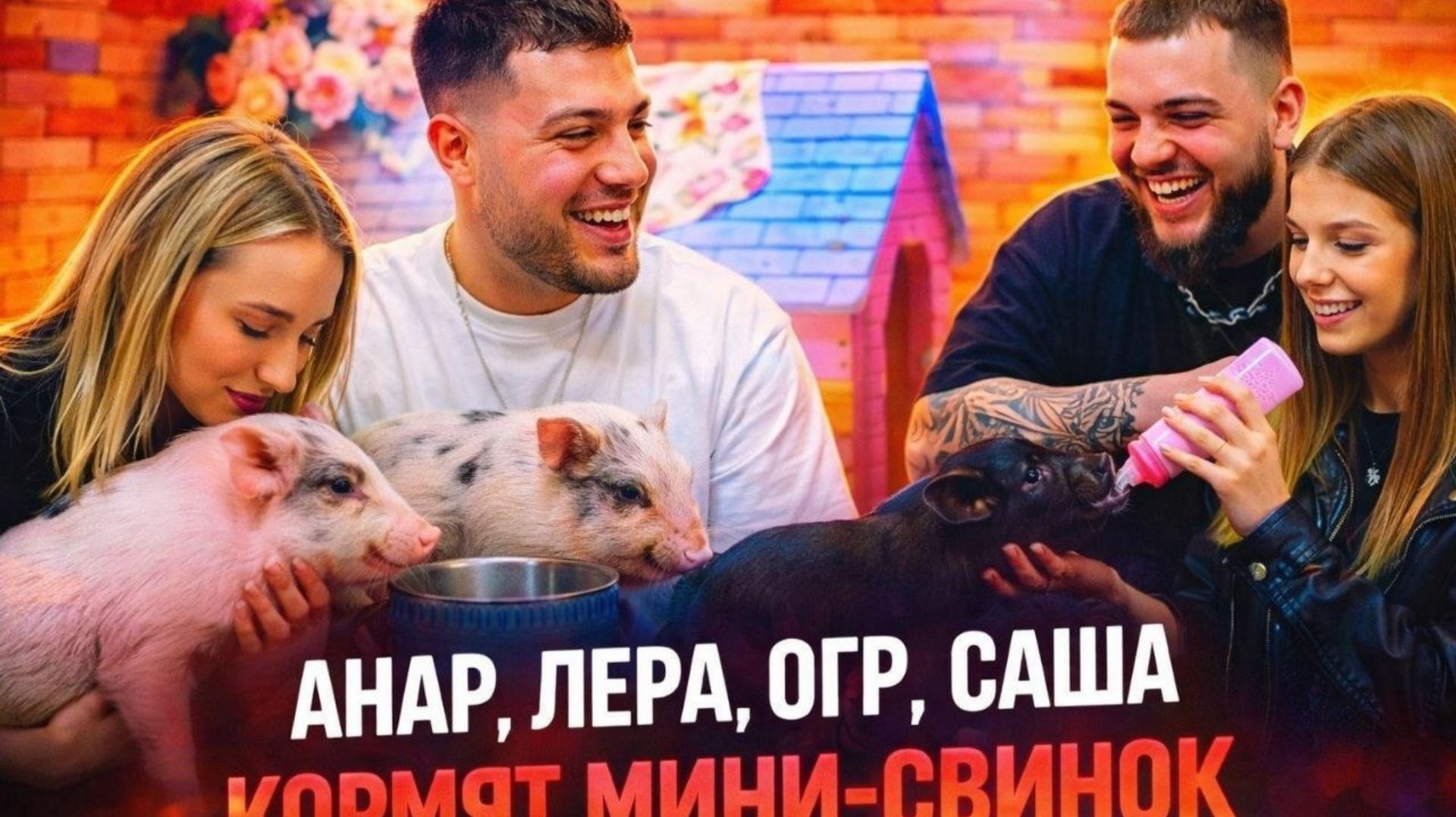 АНАР, ЛЕРА СИМКА, ОГР, САША, КОРМЯТ МИНИ-СВИНОК
