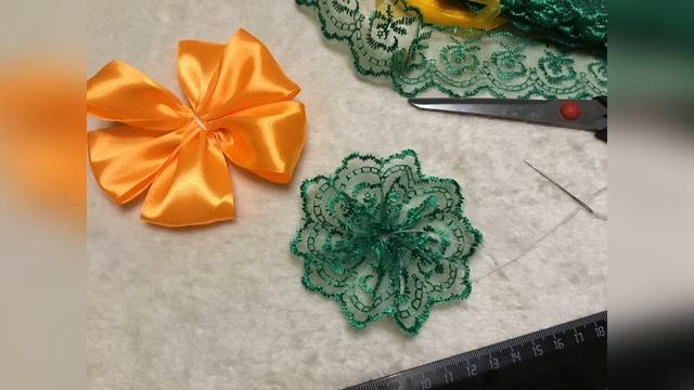 Яркий бант из разных лент