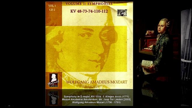 В.А. Моцарт. Все симфонии. Вып. 48-3 Wolfgang Amadeus Mozart (1756 - 1791) – Symphony [No.48] in D major, K.111+120/111a (1771) Вольфганг Амадей Моцарт (1756 - 1791) – Симфония [No.48] ре мажор, KV 111+120/111 (1771) D-dur ■ en re majeur ■ ре мажор I. Allegro assai [3:33] II. Andante grazioso [1:18] III. Finale. Presto [1:16] Dirigent: Jaap Ter Linden / дир. Яап Тер Линден Mozart Akademie Amsterdam / Камерный оркестр `Mozart Akademie Amsterdam` (Recording: August-December 2001, Doopsgezinde Kerk Haarlem, The Netherlands (Recording: Spring 2002, Maria Minor Utrecht, The Netherlands) Симфония ре мажор (№48), K.111+120 (111a), была написана Вольфгангом Амадеем Моцартом в 1771 году. Первые две части - от увертюры к опере «Асканио в Альбе»* (Ascanio in Alba), K.111, и последняя часть, 120/111a, сочинена отдельно. **см. В.А. Моцарт. Все симфонии. Приложение к выпускам 11 и 48 (‘Панталон и Коломбина’) https://vk.com/wall-210048401_297 Симфония рассчитана для двух флейт, двух гобоев, двух валторн, двух труб, литавр и струнных. Во второй части трубы и литавры не используются. Симфония состоит из следующих частей: 1. Allegro assai 4/4 2. Andante grazioso 3/8 3. Presto 3/8 Alte Mozart-Ausgabe (опубликовано 1879–1882) дает последовательность нумерации 1–41 для 41-ой пронумерованной симфонии. Симфонии без номера (некоторые, в том числе K. 120, опубликованные в приложениях к Alte-Mozart Ausgabe до 1910 года) иногда имеют номера в диапазоне от 42 до 56, даже если они были написаны раньше, чем Симфония №41 Моцарта (написанная в 1788 г.). Симфонии К.111 + 120 в этой схеме нумерации присвоен номер 48. Заключительная часть (Presto) этой симфонии также используется в качестве заключительной части пантомимы Musik zu einer: Pantalon und Colombine (Музыка к пантомиме) ре мажор, K. 446/416d (1783, неполная) в завершении и оркестровке Франца Бейера (записана сэром Невиллом Марринером и Академией Святого Мартина в полях для The Complete Mozart Edition)** **см. В.А. Моцарт. Все симфонии. Приложение к выпускам 11 и 48 (‘Панталон и Коломбина’) Яп тер Линден (нидерл. Jaap ter Linden, 10 апреля 1947, Роттердам) — нидерландский виолончелист, гамбист, дирижёр, представитель движения аутентичного исполнительства. Главный виолончелист Musica Antiqua Köln, The English Concert, Амстердамского барочного оркестра. Создал ансамбль Musica da Camera (вместе с Тоном Копманом), оркестр Моцартовская академия (2000). Выступал с известными ансамблями барочной музыки, дирижировал рядом оперных спектаклей (Король Артур Пёрселла, Ифигения в Авлиде Глюка). Играл в ансамблях с такими мастерами, как Элизабет Уоллфиш, Эндрю Манце, Джон Холлоуэй, Ларс Ульрик Мортенсен, Тон Копман. Играет на виолончели работы Джованни Гранчино (Милан, 1703). В репертуаре музыканта, в основном, музыка эпохи барокко — Гендель, Бах, Букстехуде, Телеман, Гайдн, Вивальди, Джеминиани, Верачини, Корелли, Шарпантье, Куперен, Леклер, Маре, Моцарт, Хеллендал и др. Также исполнял произведения Бетховена, Вилла-Лобоса. Преподает в Гаагской консерватории, Амстердамской консерватории, Высшей школе старинной музыки в Вюрцбурге. Среди его учеников известная немецкая исполнительница на виоле да гамба Хилле Перл.