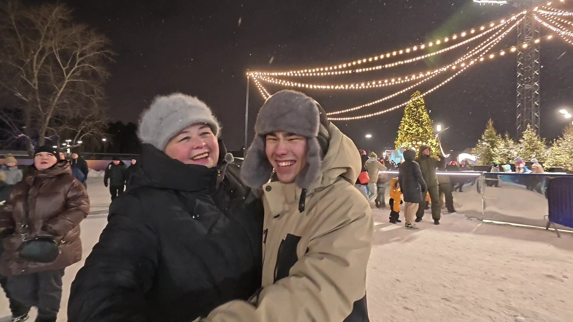 Попали на Рождественские гулянья/ каток и красивый парк/Заехали перекусить.