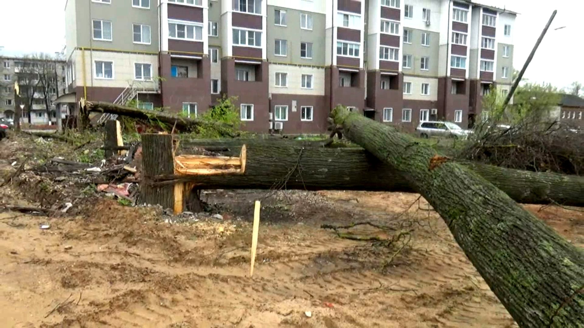 Срубленные деревья на Краснофлотской улице в городе Вязники. Съемка 26.04.2024