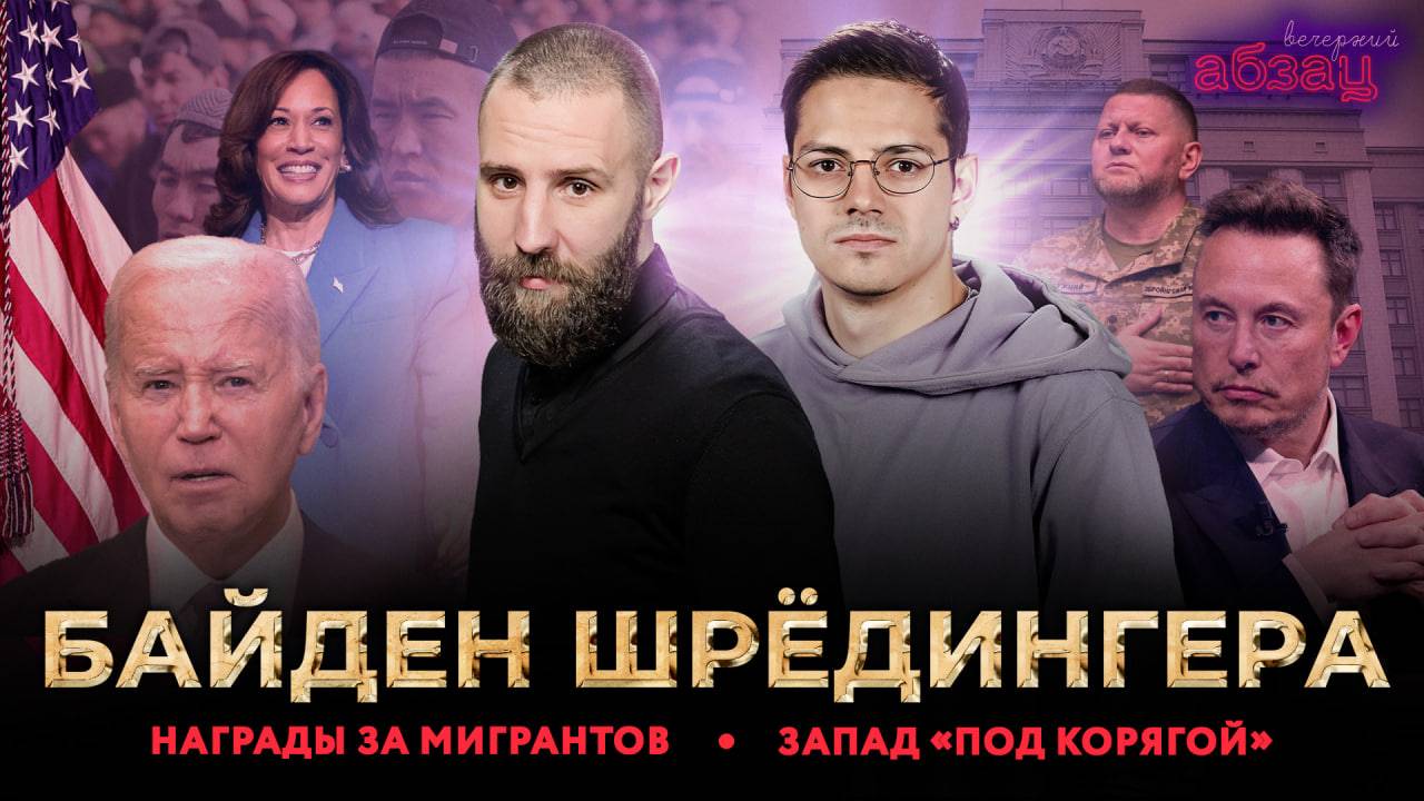 Билеты на концерт «Полного Абзаца» 27 августа, Москва, Magnus Locus https://magnuslocus.ru/afisha/1383_polnyj-abzac Наш Rutube https://rutube.ru/u/absatzmedia Скачай приложение «Абзац» по ссылке https://www.rustore.ru/catalog/app/media.absatz.twa =========== «Вечерний Абзац» с Сергеем Куликовым и Тимофеем Ермаковым. Байден Шрёдингера, награды за мигрантов, Запад «под корягой». =========== Мерч: https://www.wildberries.ru/catalog/173405521/detail.aspx =========== Канал Абзац.Видео в Телеграм https://t.me/+dEU4NgtVn7kzMjBi =========== Подписывайтесь на соцсети «Абзаца»: ВКонтакте https://vk.com/absatzmedia Телеграм-канал https://t.me/absatzmedia ОК https://ok.ru/absatz Rutube https://rutube.ru/u/absatzmedia Сайт «Абзаца» https://absatz.media/ Мерч «Абзаца» https://shop.absatz.media/ =========== ТАК СКАЗАТЬ: Варвара – о «фольклорном буме», многогранной России, Пугачёвой и Лещенко: https://vk.com/video-205805412_456250861 =========== Выпуск проекта «Точки над «и»: https://vk.com/video-205805412_456250984