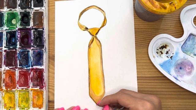 Как нарисовать галстук карандашом и акварелью начинающим | Рисунок поэтапно и легко для детей