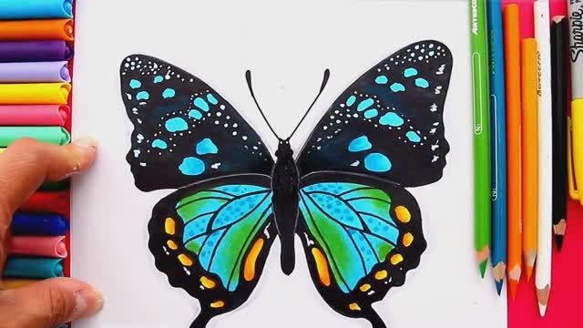 Как нарисовать и раскрасить реалистичную бабочку. На этот раз выбрали сине-зеленые тона для крыльев с несколькими штрихами огненно-желтого цвета. Также покажем вам хорошую технику использования корректора на основе белой жидкой туши, чтобы придать рисунку волшебство, яркость и изящество с помощью горошка разного размера. Не забывайте, что у нас есть и другие рисунки бабочек, которые сделали, и вы можете найти их с помощью поисковой системы на нашем канале.
