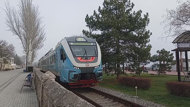 Набережная Феодосии и поезда в Анапу