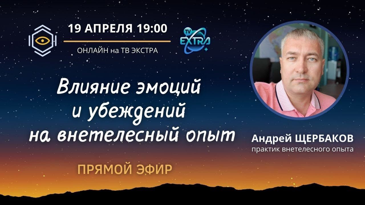 Основные темы прямого эфира 19 апреля в 19:00 МСК Влияние эмоций и убеждений на внетелесный опыт. – Влияние религиозных убеждений – Влияние эзотерических школ – Как эмоциональность формирует образы и якоря привязки? – Что такое чистота сознания и сердца во внетелесном опыте? – Остановка внутреннего диалога как способ познания реальности Опыты из внетелесной практики (истории экспериментов практика) – Можно ли проверить и доверять? – Почему современная наука не спешит изучать ВТО и вообще эзотерику? – Третий энергетический уровень ВТО. Что на горизонте? Страница Андрея Щербакова https://probujdenie.ru/experts/andrej-shherbakov/ Регулярные вебинары Андрея Щербакова онлайн и в записи https://probujdenie.ru/vto_webinary/ ______ Подписывайтесь на телеграмм канал ТВ Экстра: https://t.me/nepoznannoe_online