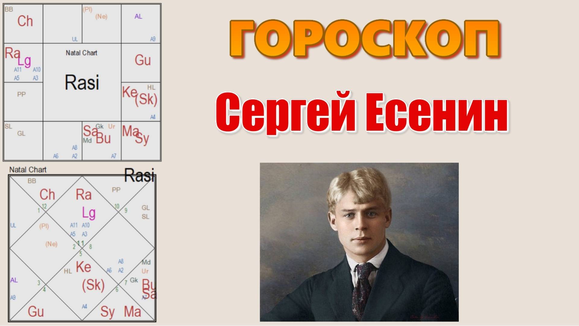 👇В данном видео затронуты следующие темы и вопросы: ✅ СЕРГЕЙ ЕСЕНИН. Гороскоп великого русского поэта. Результаты ректификации: восходящий знак в Водолее, Луна в Рыбах, накшатра асцендента – Пурва Бхадрапада. ✅ Причины и обстоятельства смерти С.Есенина. Разбор личности творческого гения с позиции астрологии и психологии. Почему обещать покончить жизнь самоубийством – не значит реально это сделать? Отличительные черты личности истероидного типа. Демонстративность и эпатажность как неотъемлемые черты «истероида». ✅ Характерные особенности представителей знаков зодиака «Водолей» и «Рыбы». Каким был в реалии Сергей Есенин и за что его любили / любят по сей день? Что свойственно Водолеям и Рыбам: сильные и слабые стороны, позитив и негатив. Примеры других известных Водолеев. ✅ Гипертим. Эпилептоид. Немного о других психотипах. ✅ Анна Сардановская – первая любовь С.Есенина? Влияние на последующие отношения с другими женщинами. ✅ Что означает сожжённый Марс в гороскопе на примере С.Есенина? ✅ Почему многие Водолеи (именно по восходящему знаку в своей натальной карте) долго не живут? ✅ И невероятно много чего другого интересного! ❗ПОЛНАЯ ВЕРСИЯ И ПРОДОЛЖЕНИЕ В ЗАКРЫТОЙ ГРУППЕ В ТЕЛЕГРАМ❗ 👇Подробная инструкция, как можно присоединиться 👇 ✅ Для желающих смотреть мой авторский контент и иметь доступ к уникальным по своей структуре и подаче познавательным, обучающим видео и прочим материалам (астропрогнозы, разбор гороскопов известных личностей, подробное и глубокое описание тех или иных положений планет в натальной карте, обсуждение разных тем, общение со мной и пр.) – можно найти в поиске в "Telegram" созданный мною бот – @MagicAstrologybot – и выбрать "Базовую подписку" (при желании можно сделать пожертвование и вас автоматически добавят в мою закрытую группу). ❗Опция действует ровно 1 МЕСЯЦ с момента оформления подписки и её рекомендуется ВО ВРЕМЯ продлевать КАЖДЫЙ МЕСЯЦ, если Вы хотите оставаться в группе и продолжать иметь доступ к материалам с момента вступления в группу. ❗Оформление подписки на 1 МЕСЯЦ автоматически не означает, что Вы получите доступ к прежним материалам, которые публиковались ранее, то есть Вы будете видеть только новые видео, которые будут публиковаться в ней в течение месяца с момента вступления в неё, однако если ваше внимание привлекла какая-то лекция, из-за которой Вы решили присоединиться к группе, напишите мне лично и я сделаю Вам приятный подарок в качестве благодарности за Вашу поддержку. ❗Если же Вас заинтересовали конкретные лекции или серия тематических видео на моём канале и Вы желаете получить доступ именно к ним, свяжитесь со мной, я могу открыть доступ к любым интересующим Вас видео по договорённости. ⚠️ Если что-то вдруг не получится или Вам будет сложно это сделать, напишите мне в личку в моих соцсетях или в Телеграм (@AlexeyBelash), я помогу оформить подписку. 👇Желающим поддержать или отблагодарить меня финансово (для пожертвований): ✅ Карта Сбербанка России: 4276380236848235 ❤️ Сердечно благодарю, обнимаю и всегда шлю все свои благословения всем тем, кто поддерживает меня в моей деятельности! ✅ Для связи со мной по вопросам обучения, победы над своей судьбой, драйвового / душевного и незабываемого общения по темам астрологии, аюрведы, питания, психологии и т.д.: 🔸Телеграм: @AlexeyBelash 🔸Youtube: www.youtube.com/@Aleks