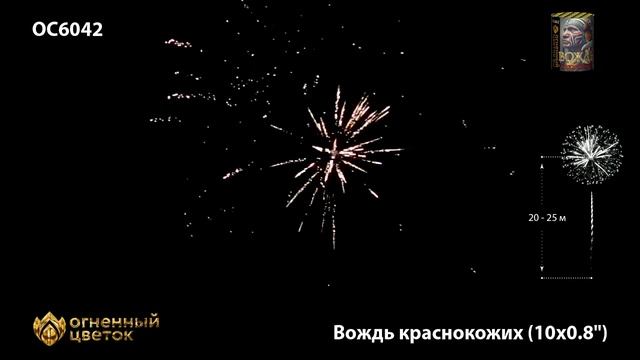 Батарея салютов Вождь краснокожих ОС6042, 10 залпов, калибром 0,8 дюйма (20 мм), высотой до 20 м