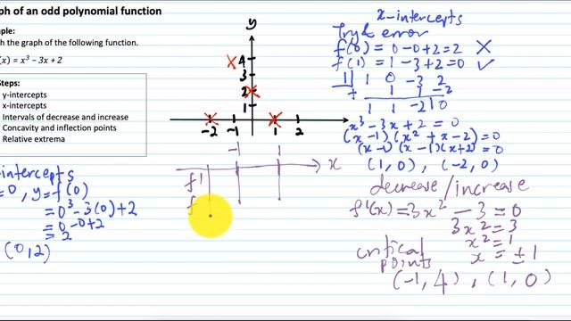 In this video, you will learn about sketching odd polynomial functions graph. Chapters: 00:00 Intro 00:29 Sketch f(x)=x^3-3x+2 00:31 y-intercepts 01:14 x-intercepts 02:14 Synthetic division 04:51 Critical points 06:29 Intervals of decrease/increase 08:01 Concavity 09:26 Inflection points 09:58 Relative extrema 11:53 Sketch the graph Calculus 1 Playlist: https://www.youtube.com/playlist?list=PL3Kq77Wcurj4UGYSvjIrKrwkXA2hculy7 Chapter 1. Functions, Limits and Continuity ======== * Finding Domain: https://youtu.be/JMK9yfbRimQ - Domain for polynomials: https://www.youtube.com/watch?v=JMK9yfbRimQ&t=16s - Domain for rational functions: https://www.youtube.com/watch?v=JMK9yfbRimQ&t=419s - Domain for radicals functions: https://www.youtube.com/watch?v=JMK9yfbRimQ&t=634s - Domain for log functions: https://www.youtube.com/watch?v=JMK9yfbRimQ&t=1117s - Domain for exponential functions: https://www.youtube.com/watch?v=JMK9yfbRimQ&t=1439s * Computing Limits: https://youtu.be/KEph8v1ItI4 - Limits of Indeterminate Form of Type of 0/0: https://youtu.be/pS6_7VXdpC0 - Limits at Infinity: https://youtu.be/DKU0MgRieDE - Limits at Infinity - Polynomials: https://youtu.be/D6pPZssF83E - Limits at Infinity - Rational: https://youtu.be/sjoTcvOMwv0 - Limits at Infinity - Radicals: https://youtu.be/GaWgJZToVX4 - Limits - Indeterminate Form of Type Infinity - Infinity: https://youtu.be/x2YK9x4Mfc4 - Limits of Trigonometric Functions: https://youtu.be/SQd1wb9_LFE * Continuity: https://youtu.be/Uv1JjTcN1Ac Chapter 2. Differentiation ======== * Definition of Derivative: https://youtu.be/e7-VzIDD55E * Chain Rule: https://youtu.be/uv7oXwDQu38 * Implicit Differentiation: https://youtu.be/yy2Kvftg72k * Equation of Tangent Line: https://youtu.be/6ipZtHYsts4 * Local Linear Approximations and Differentials: https://youtu.be/3SRzaW1Ehh0 * The Mean-Value Theorem for Integrals: https://youtu.be/PC8WcOoyTP4 Chapter 3. Applications of Differentiation ======== * Related Rates: https://youtu.be/GxgZw69oAoo * Critical Points: https://youtu.be/hwB-Tzf8SIg * Increasing and Decreasing Functions: https://youtu.be/xVQ4IopvWpM * Concavity and Inflection Points: https://youtu.be/Jt4NHv9xpIE * Relative Maxima and Minima: https://youtu.be/NZ3TF8zhu9w * Vertical and Horizontal Asymptotes: https://youtu.be/rlLFyV0hpjs * Sketch Even Polynomial Graphs: https://youtu.be/OOcPAZh1gOY * Sketch Odd Polynomial Graphs: https://youtu.be/wESJVtdQGs8 * Sketch Rational Graphs: https://youtu.be/MPgUjXdVTno * Maximum and Minimum Values: https://youtu.be/VJOWO4dBC7M * Application of Maximum and Minimum Values: https://youtu.be/ax4dZsDAQWI * Rolle's Theorem; Mean Value Theorem: https://youtu.be/LdtB6YDqDB8 Chapter 4: Integration ======== * The Indefinite Integrals: https://youtu.be/lR1oHFUQBUo * Integration by Substitution: https://youtu.be/P_BX-VNpsLI * Definite Integral: https://youtu.be/zRIGz_i-E6Y * The Mean Value Theorem for Integrals: https://youtu.be/PC8WcOoyTP4 * The Second Fundamental Theorem of Calculus: https://youtu.be/mC1fSsEehis * Evaluating Definite Integrals by Substitution: https://youtu.be/hDcyGDdj-NM Chapter 5: Applications of Integration ======== * Area Between Two Curves: https://youtu.be/a7weKV6T0TA #calculus #differentiation #graph