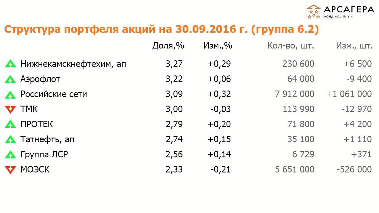 Наши фонды. ИПИФА «Арсагера - акции 6.4» Сентябрь 2016