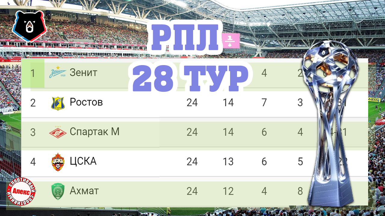 Чемпионат России (РПЛ). Результаты 28 тура. Расписание + таблица. Кто поднялся из ФНЛ?