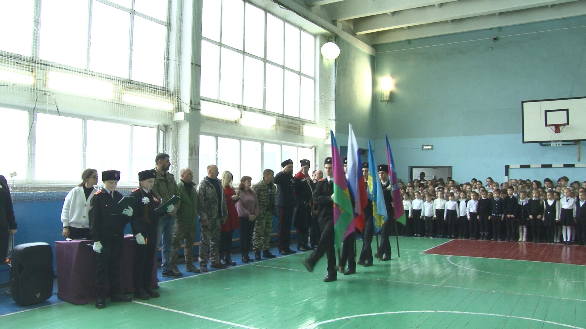 Торжественное открытие прошло сегодня в школе №18. Участие в мероприятии приняли волонтёры, занимающиеся сбором и доставкой гуманитарной помощи в зону СВО, а также казаки-наставники Юровского хуторского казачьего общества. Месячник пройдёт с 22 января по 23 февраля.