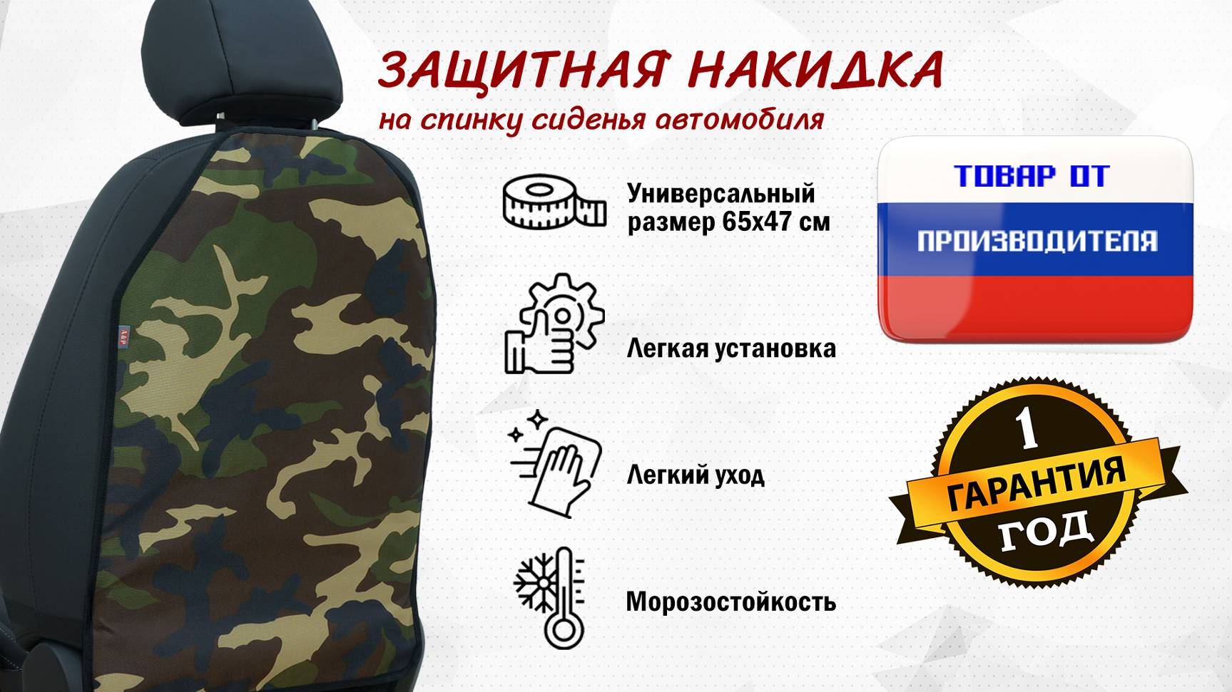 Накидка на спинку сиденья автомобиля из ткани Оксфорд. Цвет: камуфляж. Промо-ролик.