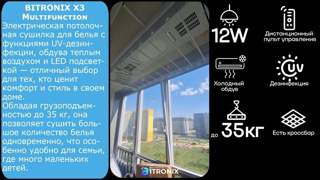 Ваш идеальный выбор для удобной и безопасной сушки белья! BITRONIX X3 Multifunction – это современный прибор, сочетающий элегантный дизайн и передовые технологии. Он станет надежным помощником в вашем доме, обеспечивая комфорт и бережный уход за вещами. Преимущества BITRONIX X3 Multifunction: ✔ Выдерживает до 35 кг. Отлично подходит для больших объемов белья – идеальный вариант для семей. ✔ Два режима сушки Обычный обдув или подогретый воздух – выбирайте оптимальный способ для быстрого и равномерного высыхания. ✔ UV-стерилизация Уничтожает бактерии, вирусы и пылевых клещей, делая ваши вещи не только сухими, но и гигиенически чистыми. ✔ Энергосберегающая LED-подсветка (12 Вт) Мягкий свет без лишних затрат на электроэнергию. ✔ Управление с пульта Регулируйте работу сушилки, не вставая с места – просто и удобно! ✔ Экономия пространства Освобождает до 3 м² полезной площади, создавая больше места для жизни. ✔ Легкий монтаж Установка за считанные минуты с помощью подробной видеоинструкции – никаких специальных навыков не требуется. Выбирайте BITRONIX X3 Multifunction – комфорт, безопасность и экономия в одном устройстве! https://bi-tronix.com/smart-dryer/x3mlw/?utm_source=rutube&utm_medium=video&utm_campaign=video Контакты: 8 800 301 35 11 +7 967 979 31 50 WhatsApp/TG Rutube канал: https://rutube.ru/channel/51133044/ Яндекс Дзен : https://dzen.ru/bitronix Группа ВКонтакте: https://vk.com/bitronixdryer YouTube канал: https://youtube.com/@bitronixbitronix #BITRONIX #битроникс #умнаясушилкадлябелья #сушилкапотолочнаяэлектрическая #сушилкадлябельяпотолочнаяэлектрическая #сушилкаспультом #умнаясушилкадлябельяxiaomimijia #сушилкадлябельяxiaomiclothes #сушилкидлябельяспультом #сушилкадлябельясэлектроприводом #сушилкадлябельясфункциейобогрева #потолочнаясушилкаспультом #сушилкадлябельяпотолочнаяспультом #сушилкидлябельяsenspa #сушилкадлябельясяоми #сушилкадлябельясвентилятором #сушильныйшкафдляодежды #стиральносушильнаямашина #сушилкадлябельяпотолочная #сушилкадлябельянабалкон #сушилкадлябельяпотолочнаянабалкон #сушилкадлябельявванную #сушилкадлябельянапольная #сушилкадлябельянастенная #ophiroc #foxidry #xiaomi #сушилкадлябелья #умнаясушка #smatrсушилкадлябелья #smartdryer #xiaomimijia #senspamarmi #сушкадлябельяпотолочная #сушкадлябелья #сушкадлябельянапольная #сушилкадлябельяопускающаяся #smartсушилкадлябелья #сушильнаямашина #электрическаяcушилка #сушилкавкомнате #сушилканабалкон #тренд2025 #тренд #сушилканапольная #сушилканастенная #сушилкавванную #ремонтванной #ремонтквартир #дизайнквартиры #дизайнванной #ремонтбалкона #ремонтбалконовилоджий #ремонтбалконов