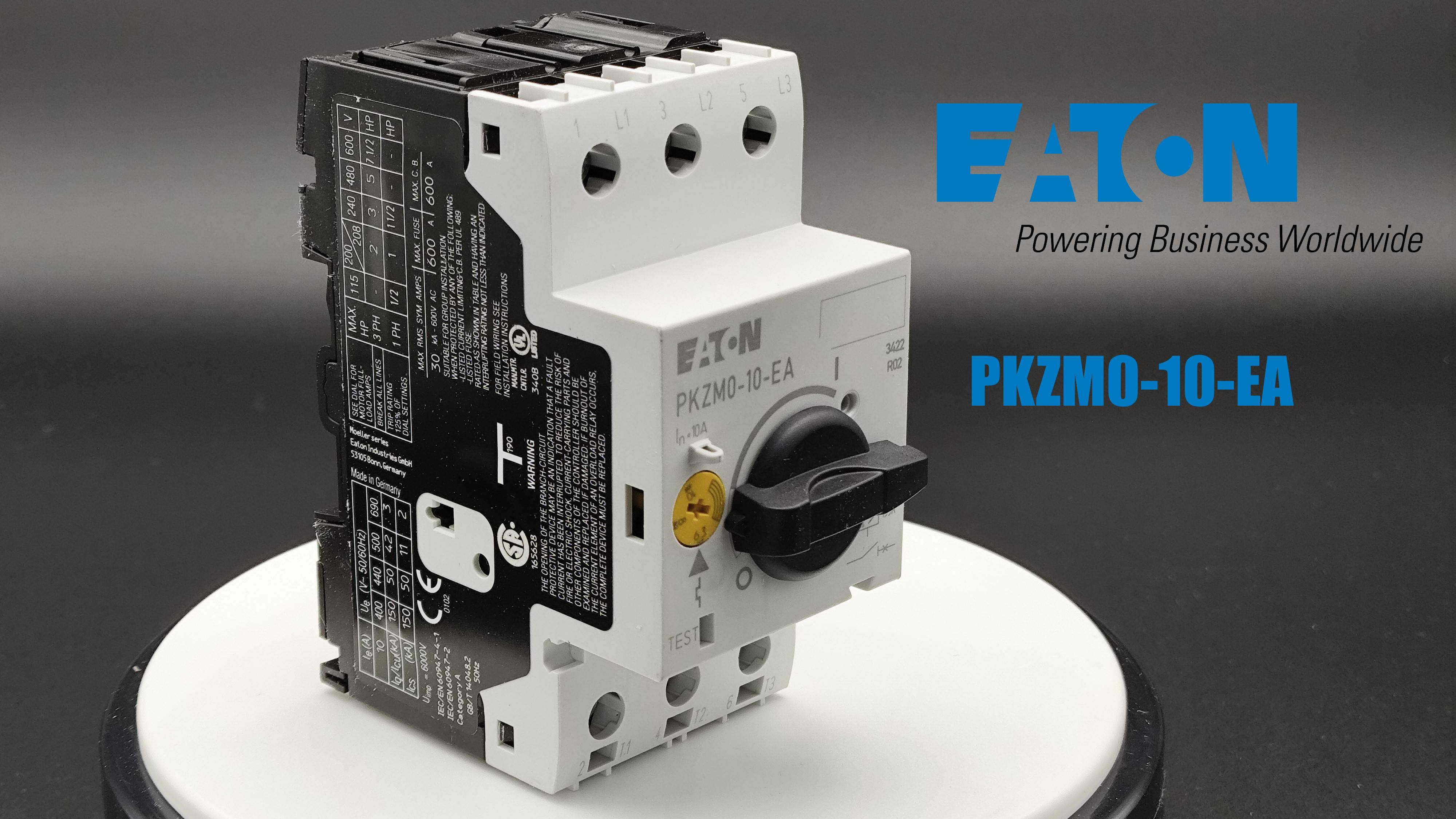 Автоматический выключатель защиты двигателя производства EATON. Номинальный рабочий ток 10 А, диапазон уставки 6,3...10А. Поворотная ручка включения. Монтаж на Din-рейку. Отключающая способность 150 кА. Более подробную информацию вы сможете найти в нашем интернет-магазине по ссылке: https://electroline.ru/product/eaton-pkzm0-10-ea-m189903.html