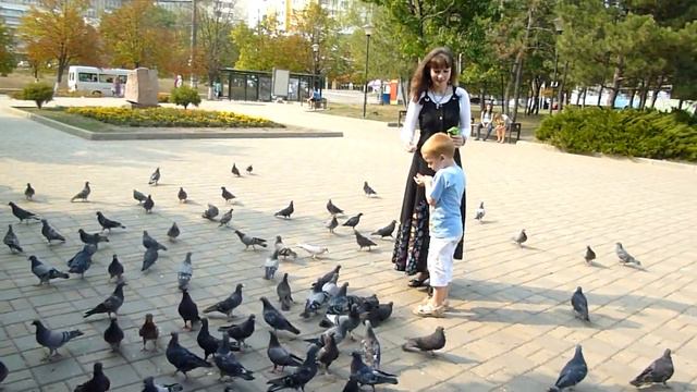 Кормим голубок. Парк афганцев, Кишинев. (1)