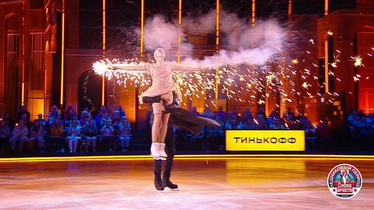 На льду — актриса театра и кино Дарья Мороз и олимпийский чемпион Максим Маринин. Пара выступает под версию песни «The Show Must Go On» группы «Queen» из фильма «Мулен Руж».