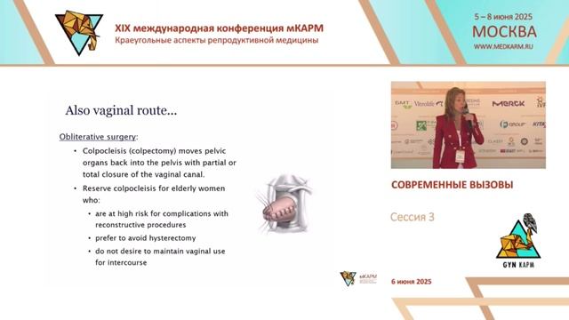 Максимова Юлия Владимировна. Сочетание методик эстетической гинекологии и реконструктивной пластической тазовой хирургии – кому? что? когда? Конференция мКАРМ-XIX, ГИН-КАРМ «СОВРЕМЕННЫЕ ВЫЗОВЫ», 6 июня 2025