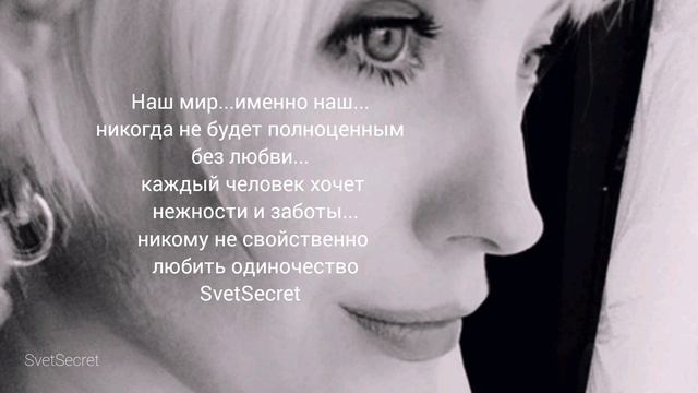 Наш мир - автор текста Светлана Гороховик SvetSecret Наш мир...именно наш... никогда не будет полноценным без любви... каждый человек хочет нежности и заботы...никому не свойственно любить одиночество... если кто-то говорит,что одиночество в кайф,то человек просто прячется от окружающих...защищается молча... ограждается от боли..от любви...от нежности... оберегает себя наперёд... Мы рождены в паре...и наша суть быть в паре...а иначе просто никак... Как то так сложилось,что самое прекрасное и приятное чувство может быть таким болезненным... Но я вам желаю, чтобы каждый жил без боли и в любви самой искренней и приятной и на все лета... #жизнь #любовь#олюбви