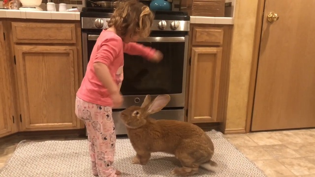 Маленькая девочка нашла себе лучшего друга в лице огромного кролика. #кролик #дети #милота #дружба