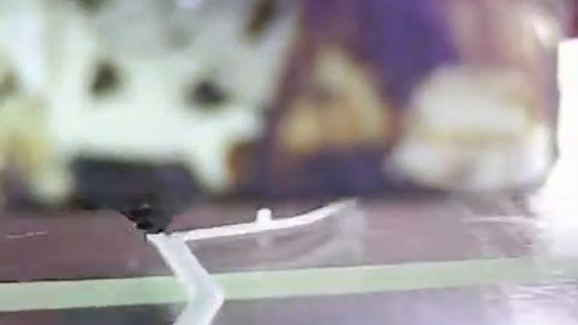Вид печати первого слоя крупным планом. Сразу видно что недостаточно ретракта, большая скорость для клея бф-6 на столе + зазор большой выставлен до стола.