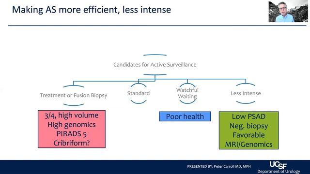 The California Prostate Cancer Coalition (CPCC) and The Helen Family Diller Comprehensive Cancer Center present the 2021 Patient Conference on Prostate Cancer. This session: Peter Carroll, MD, MPH, UCSF Department of Urology. Recorded on 05/14/2021. [Show ID: 37260] Please Note: Knowledge about health and medicine is constantly evolving. This information may become out of date. More from: Prostate Cancer Patient Conference (https://www.uctv.tv/prostate-cancer-conference) Explore More Health & Medicine on UCTV (https://www.uctv.tv/health) UCTV features the latest in health and medicine from University of California medical schools. Find the information you need on cancer, transplantation, obesity, disease and much more. UCTV is the broadcast and online media platform of the University of California, featuring programming from its ten campuses, three national labs and affiliated research institutions. UCTV explores a broad spectrum of subjects for a general audience, including science, health and medicine, public affairs, humanities, arts and music, business, education, and agriculture. Launched in January 2000, UCTV embraces the core missions of the University of California -- teaching, research, and public service – by providing quality, in-depth television far beyond the campus borders to inquisitive viewers around the world. (https://www.uctv.tv)