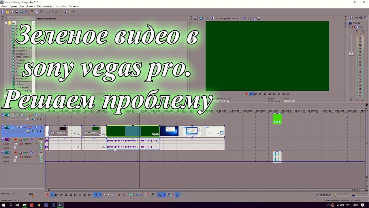 Зеленое видео в sony vegas pro. Как решить проблему.