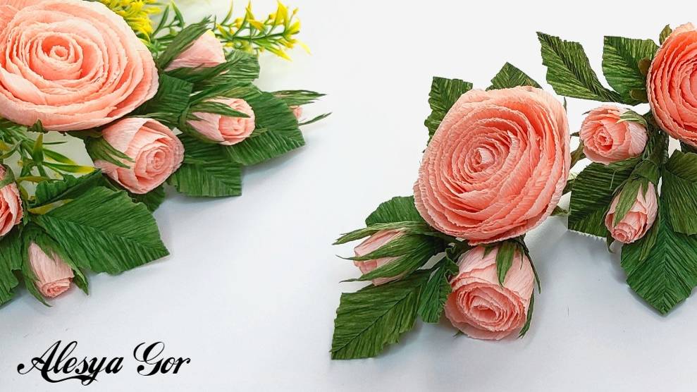 🌸 КАК СДЕЛАТЬ КУСТОВУЮ РОЗУ ИЗ ГОФРИРОВАННОЙ БУМАГИ СВОИМИ РУКАМИ