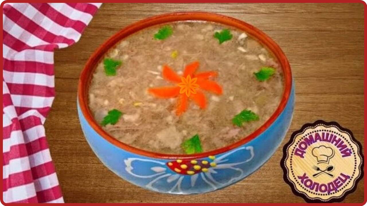 Холодец — исконно русское блюдо, и кому как не нам уметь его готовить. Очень многие уверены, что употребление холодца или желе приносит пользу коже, связкам и суставам. Потому что коллаген из холодца прямиком направляется в эти части тела, чтобы восполнить нехватку собственного белка. И кожа от этого становится упругой и молодой, хрящи в суставах восстанавливаются, а связки вновь обретают эластичность и прочность. Холодец готовится долго, но все знают, что он стоит всех затраченных усилий. Тем, кто не знает, как приготовить холодец в домашних условиях, посмотрите мое видео, все очень просто. Ингредиенты: 1 свиная рулька, 2 свиные ножки, по вкусу смесь перцев, черный перец, 3-4 лавровых листа, соль, 2 небольших луковицы, 1 морковь.