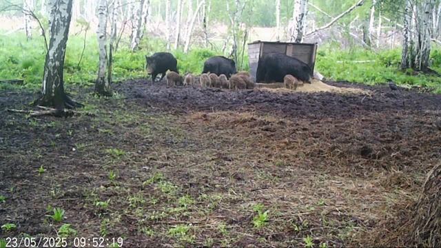 Охотничьи угодья, кабан с приплодлм. Мелкие весёлые игривые малыши. Летом контроль, посчит, наблюдение. В сезон, контроль численности. Немного тишины и лучшей музыки на свете, звуки самой природы. В холодные зимние дни, кусочек лета. согрнвайтесь, считайте количество. Кто сколько насчитал? #Кабан #природа #лето #охота #охотник