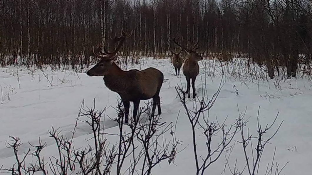 самцы, самки и оленята Европейских благородных оленей в период морозов, глубокого снега и бескормицы. #природа #дикий #животные #олень #зима